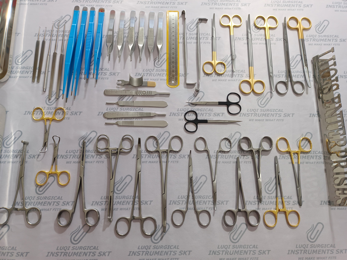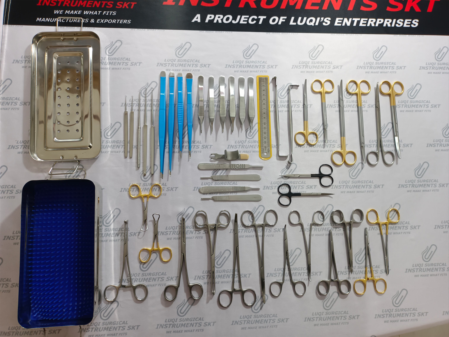 Luqis Enterprises introduces a Complete Combination of 48 Instruments designed to facilitate the Plastic Surgeons as a Set to be used in Operating Room for Facelift Surgery Procedures. This especially manufactured facelift set features every instrument required to perform the procedure. All Scissors in this set features Tungsten carbide layer and supercut serrations on blades to ensure they remain sharp and good to use for a minimum period of 3 years.Needle holders in this Set features Tungsten Carbide Jaw ensuring firm grip while suturing in operating room. All Instruments in this set are crafted with Medical Grade Stainless Steel ensuring the instruments are Reusable / Autoclavable and are designed to withstand frequent sterilization procedures.